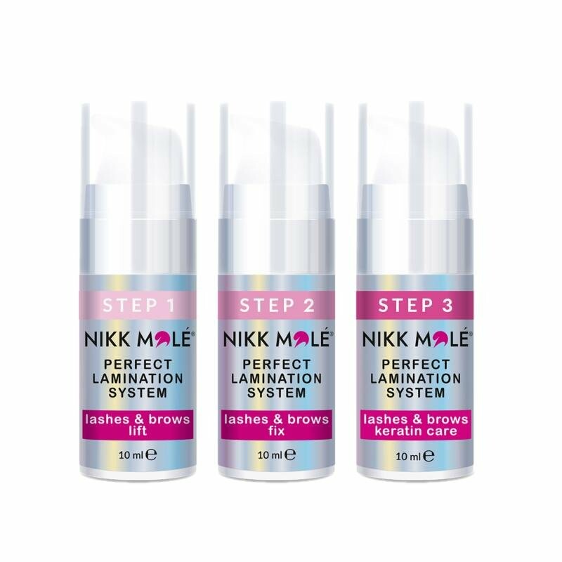 Професійний набір для ламінування вій та брів Nikk Mole забезпечує максимальний ефект збереження структури волосся завдяки своїм активним компонентам. Кератин та пантенол у складі захищають волоски під час процедури, повертаючи їм м’якість та еластичність.